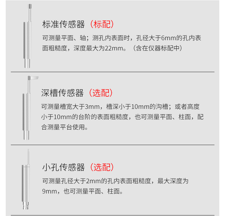 大量程,多參數(shù)Ra,Rz,Rq,Rt,Rp,Rv,R3z,R3y,RzJIS,Rsk,Rku,Rsm,Rmr;