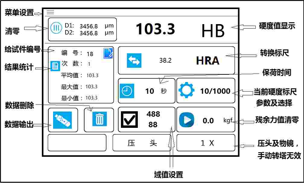 ● 壓痕直徑長度D1和D2值輸入,減少人為讀數(shù)誤差;