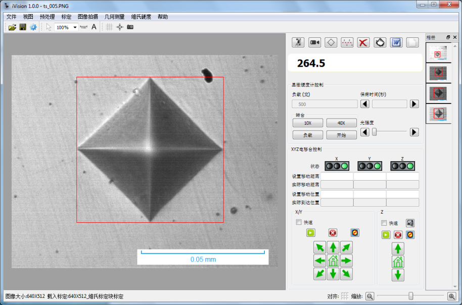 3.每點測量圖像被保存可用于最后手動修正;修正時只需要鼠標拖拉壓痕四邊形邊框,硬度測量值、統(tǒng)計、和測量像冊等自動更新。