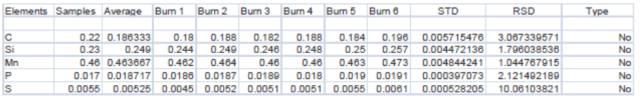 以PMI-MASTER Smart對石化行業(yè)有要求的低硫磷20#鋼管件中硫磷含量是否達標進行檢測驗證,分析結果如下: