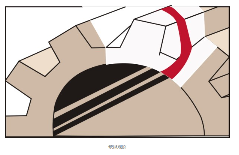 5. 觀察材料表面缺陷,在被測材料表面噴涂顯像劑后,觀察材料表面,直至跡痕的大小不發(fā)生變化為止。必要時可進行多次探傷。