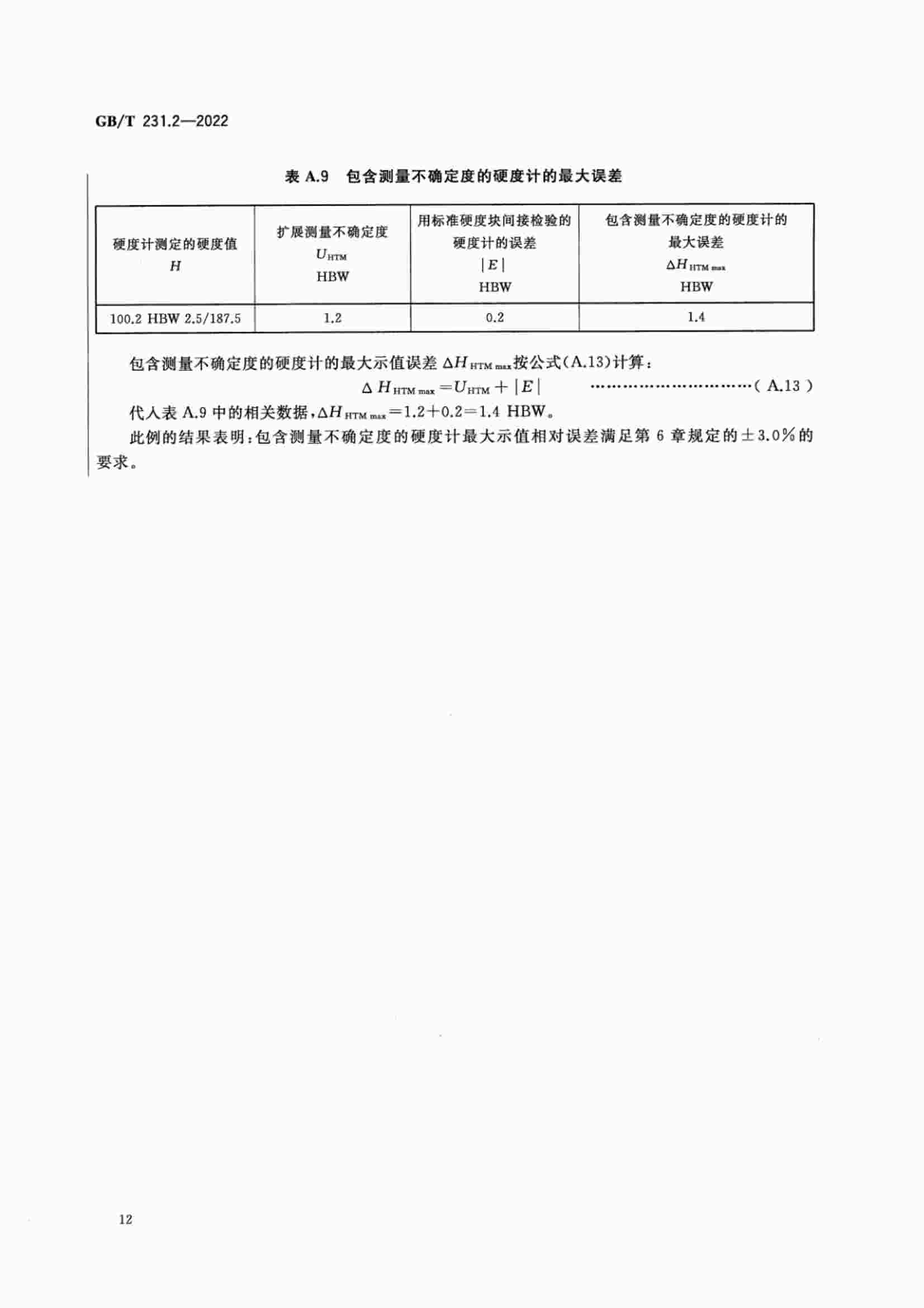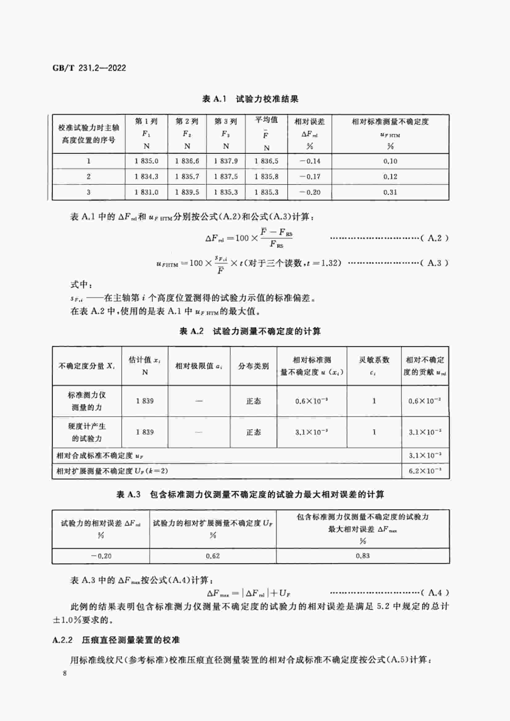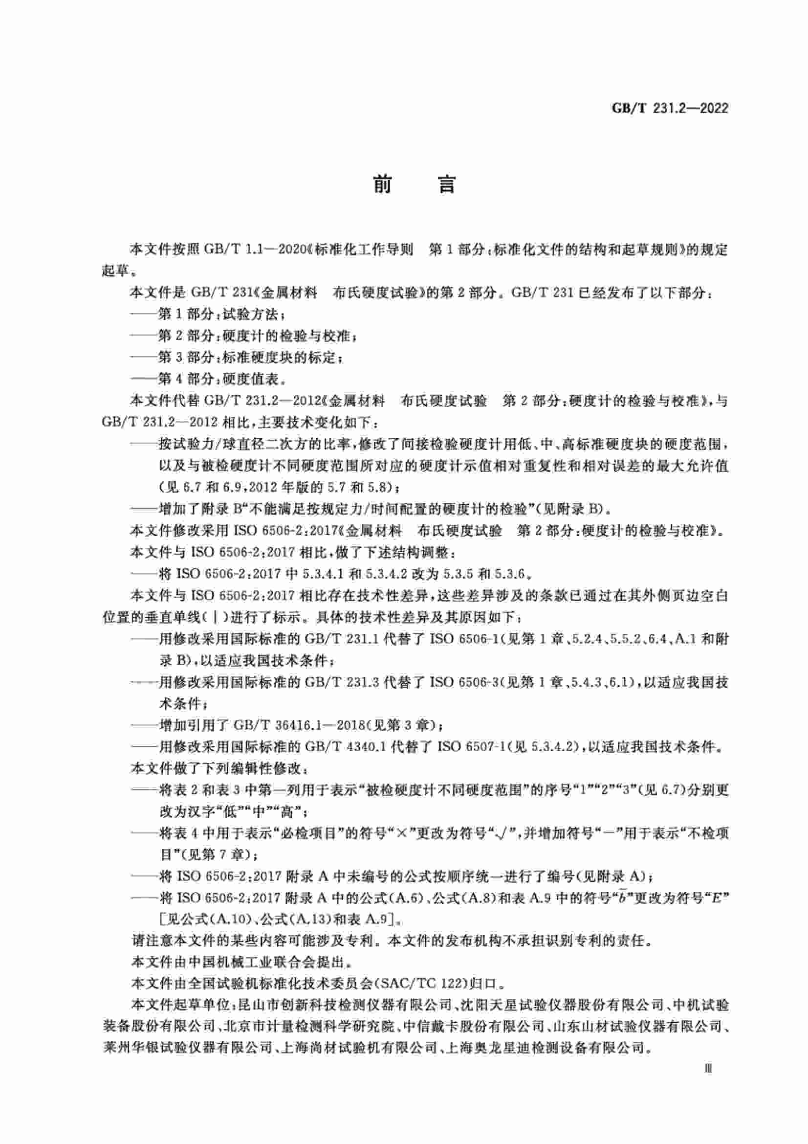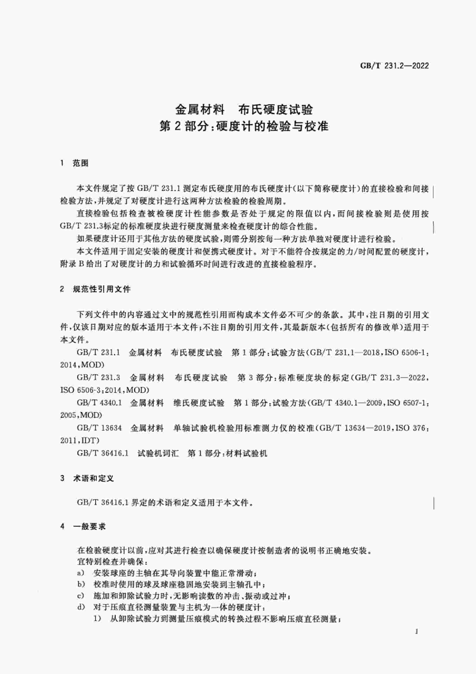 GBT 231.2-2022 金屬材料 布氏硬度試驗 第2部分:硬度計的檢驗與校準