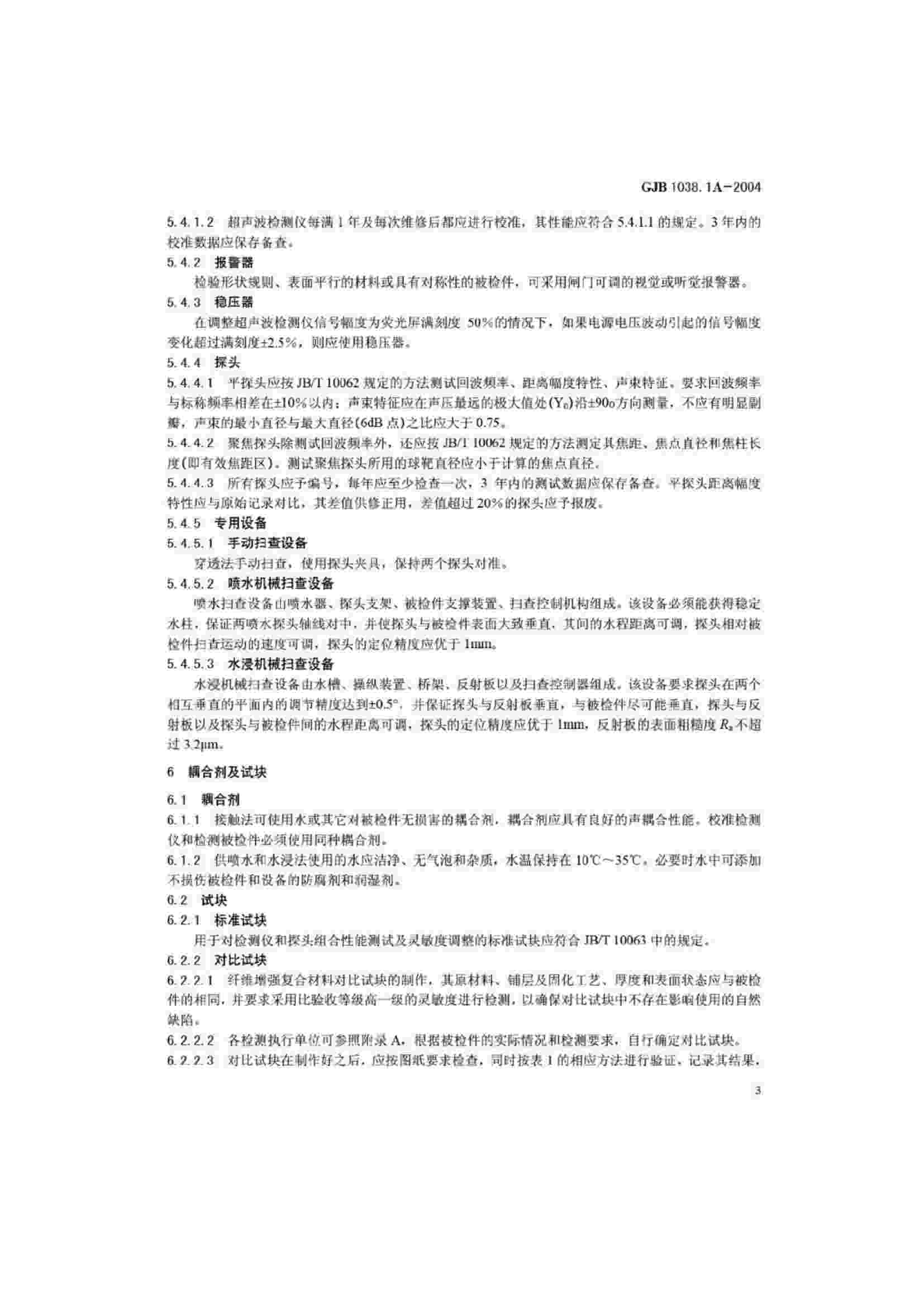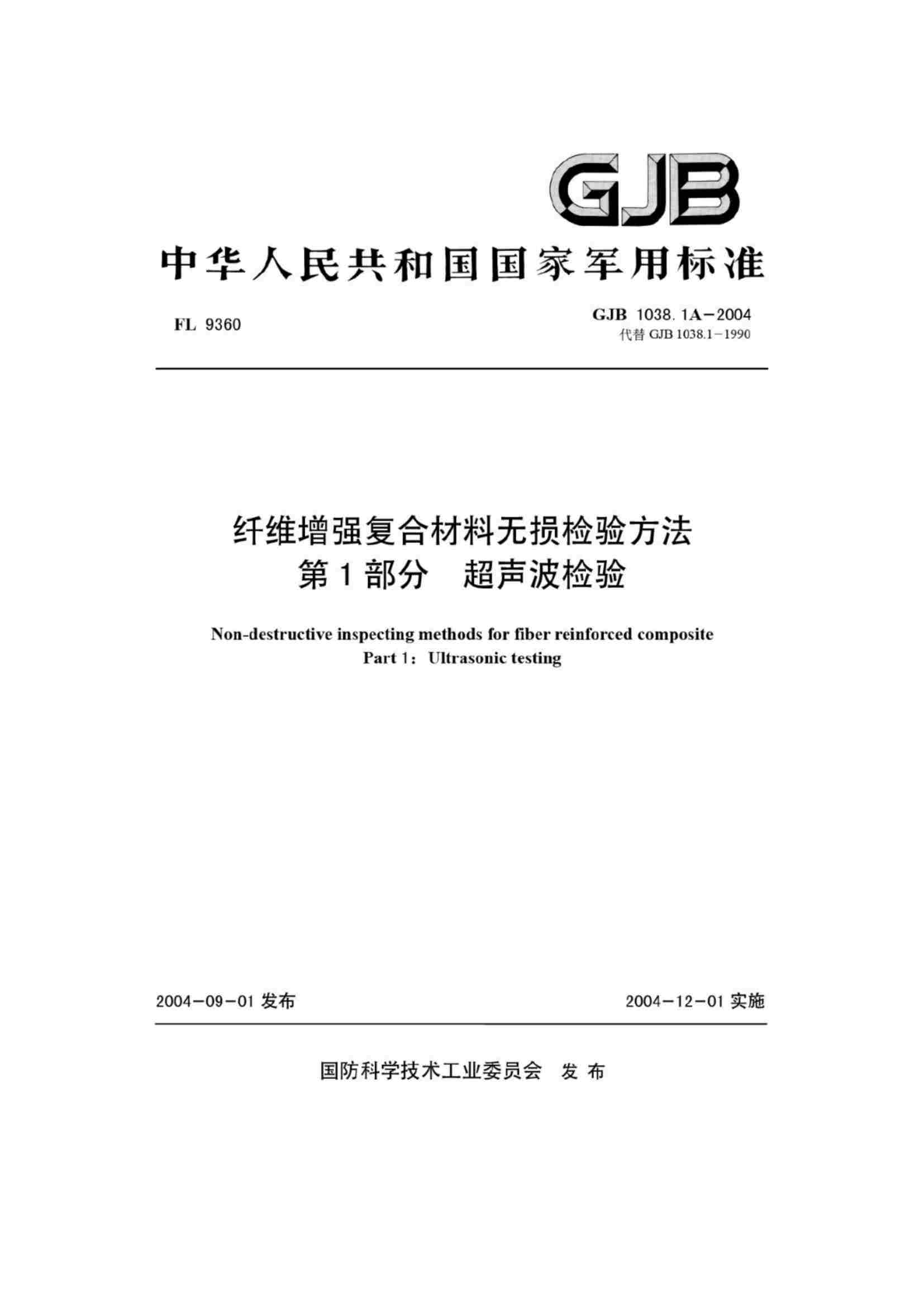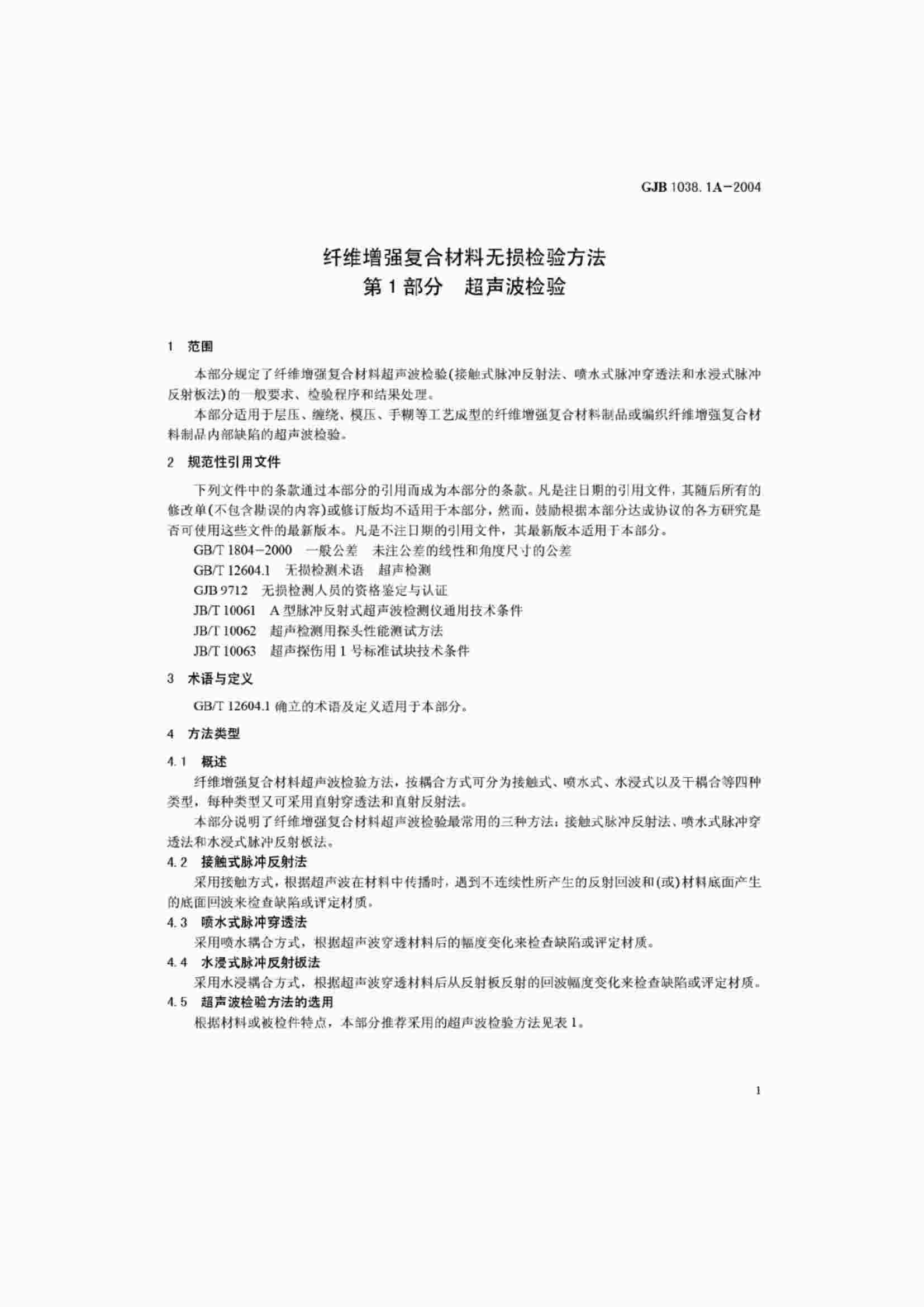 GJB 1038.1A-2004 纖維增強復(fù)合材料無損檢驗方法 第1部分 超聲波檢驗