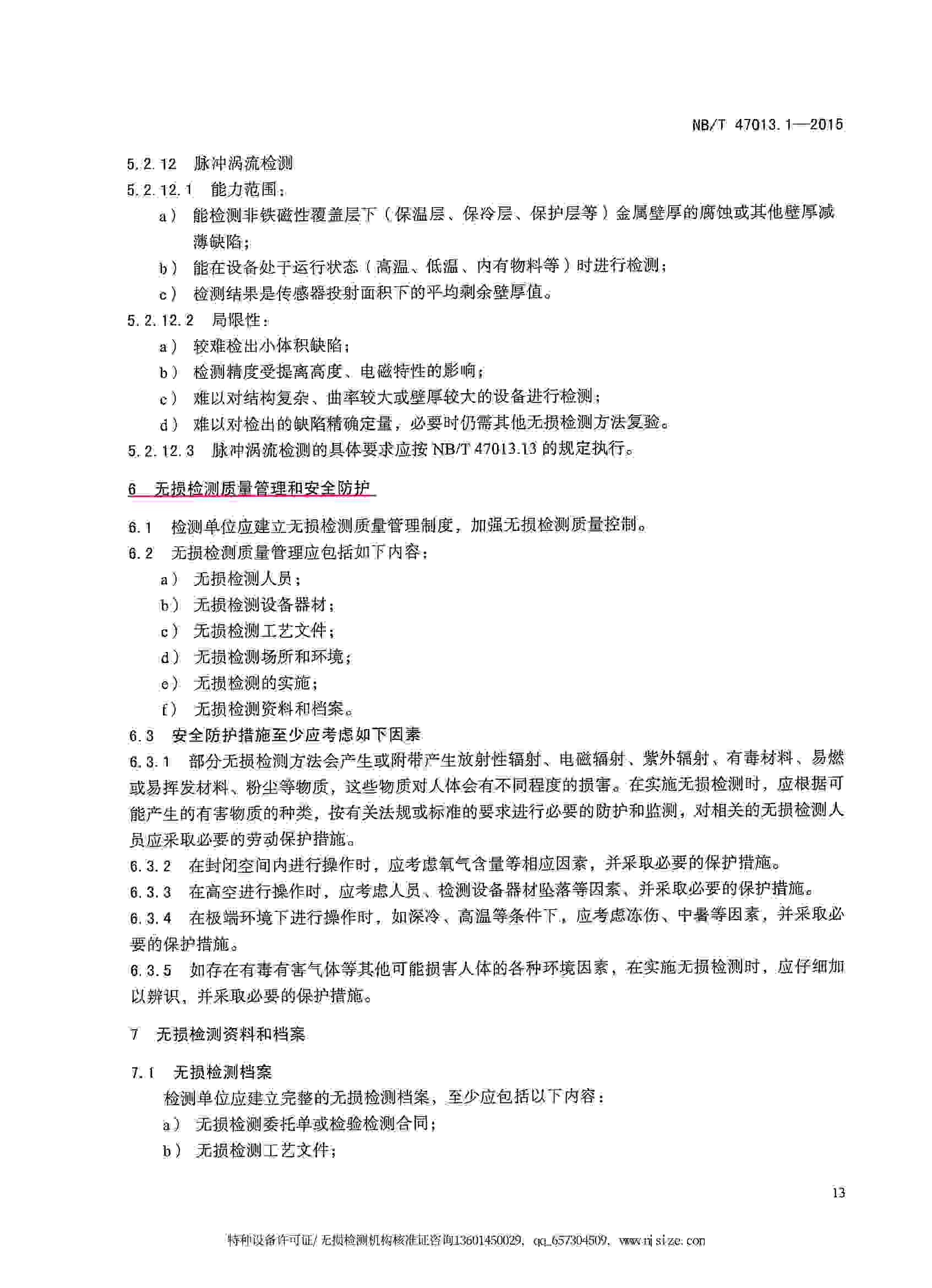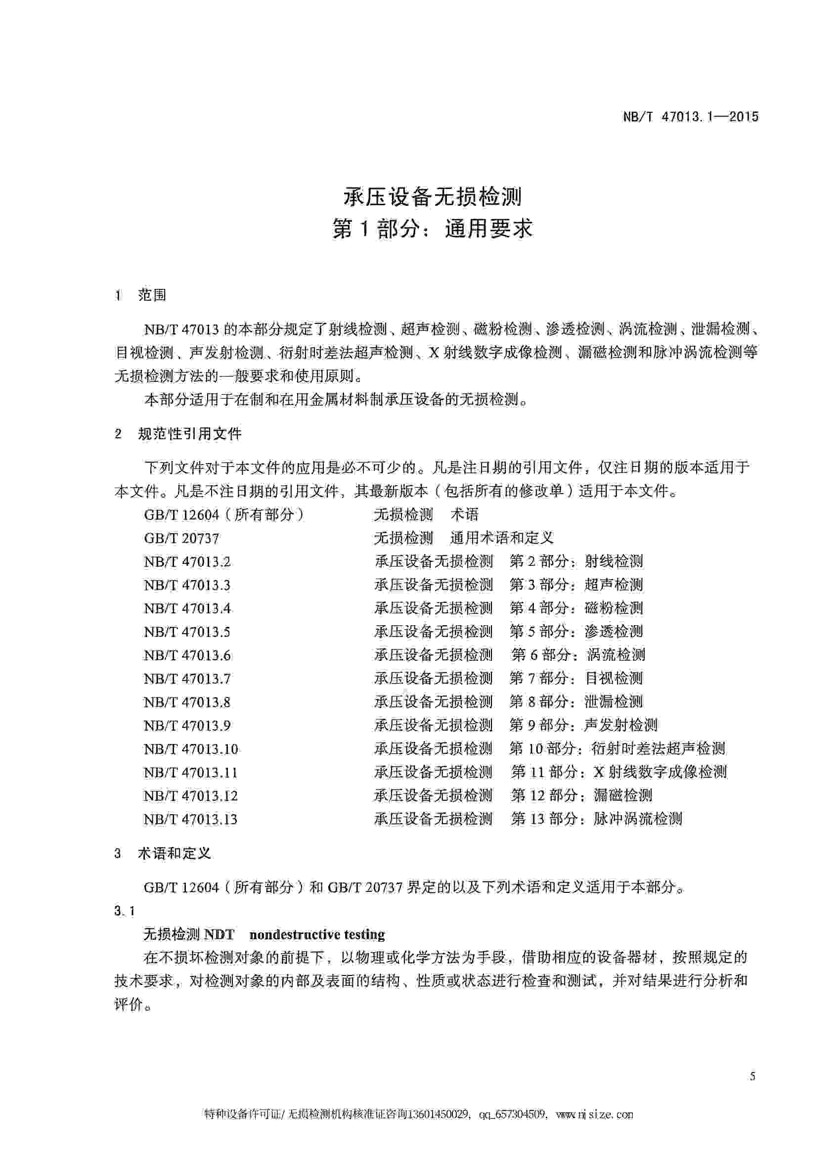 NB/T47013.1-2015 承壓設(shè)備無損檢測 第1部分:通用檢測