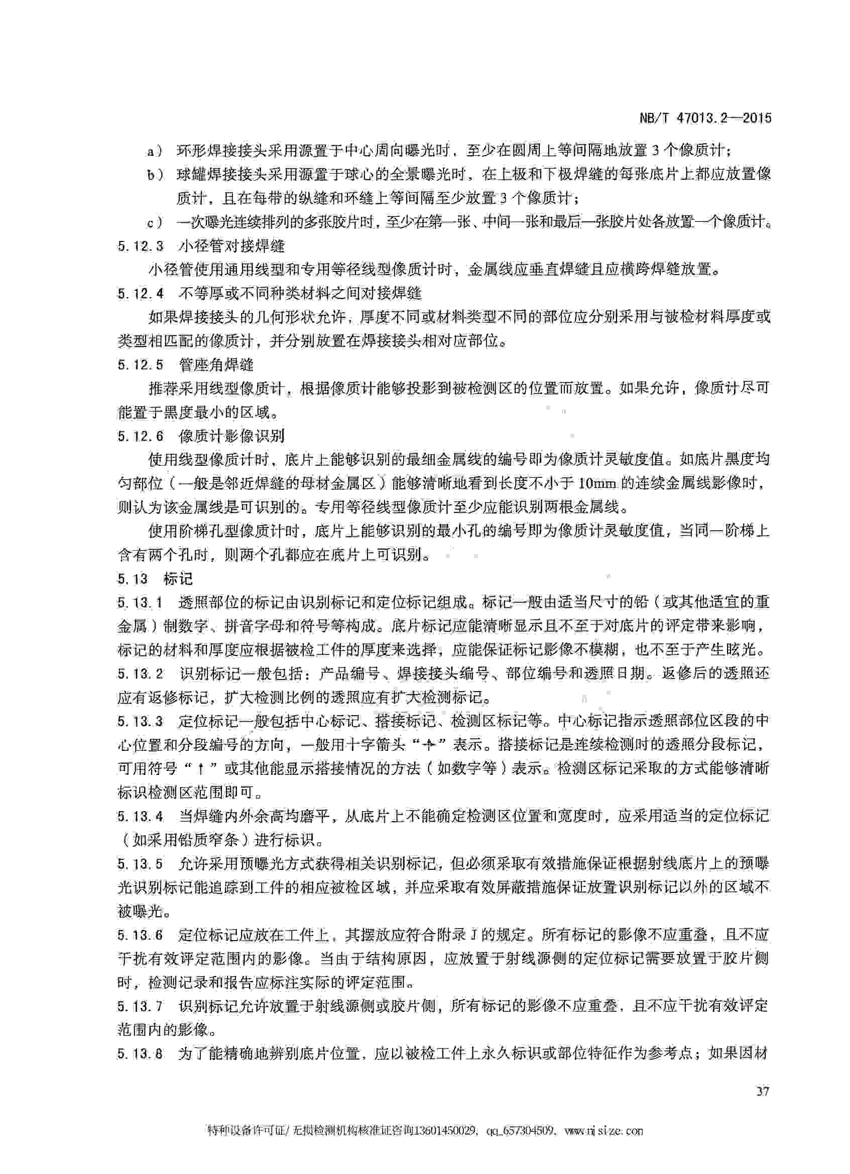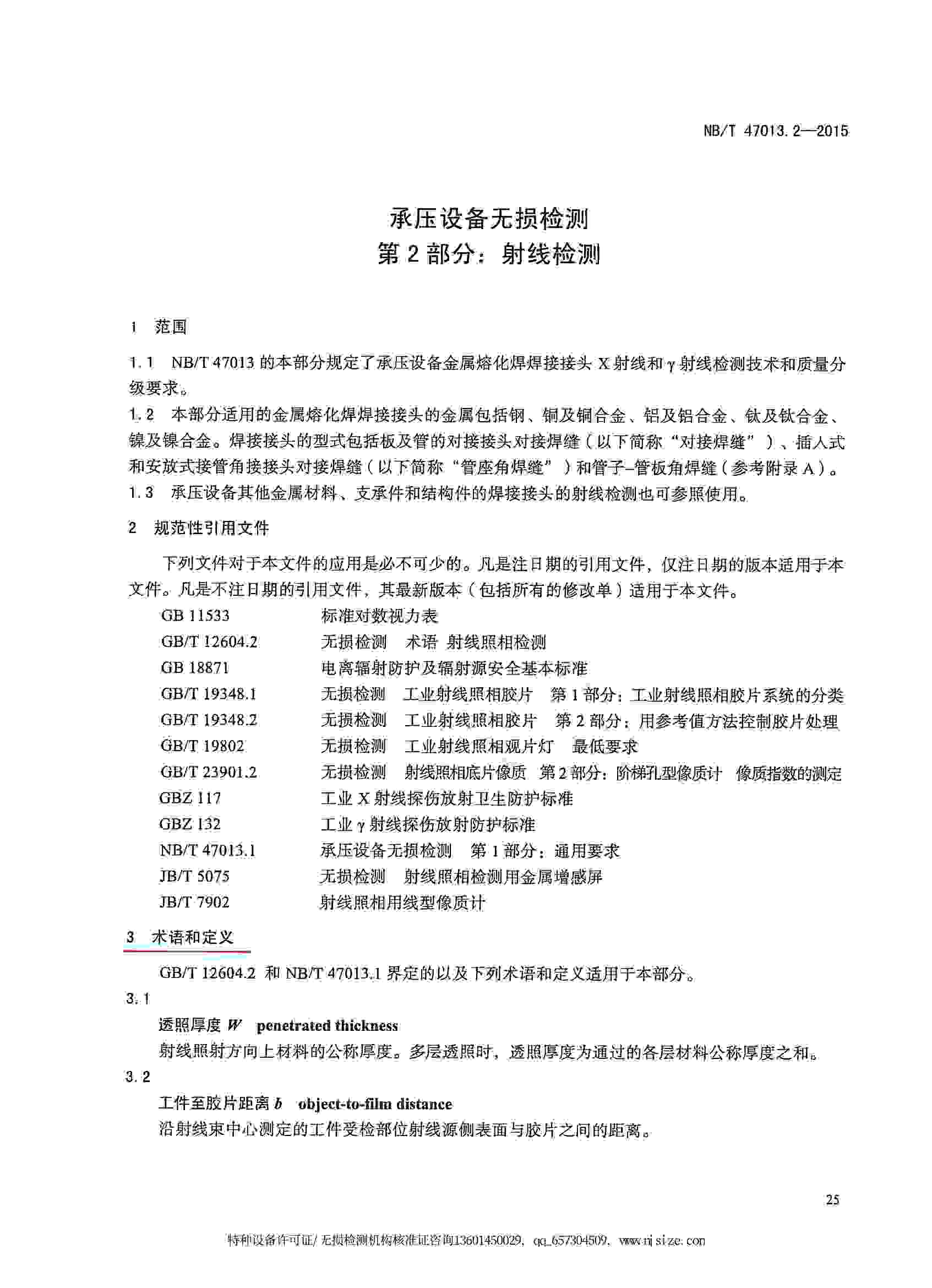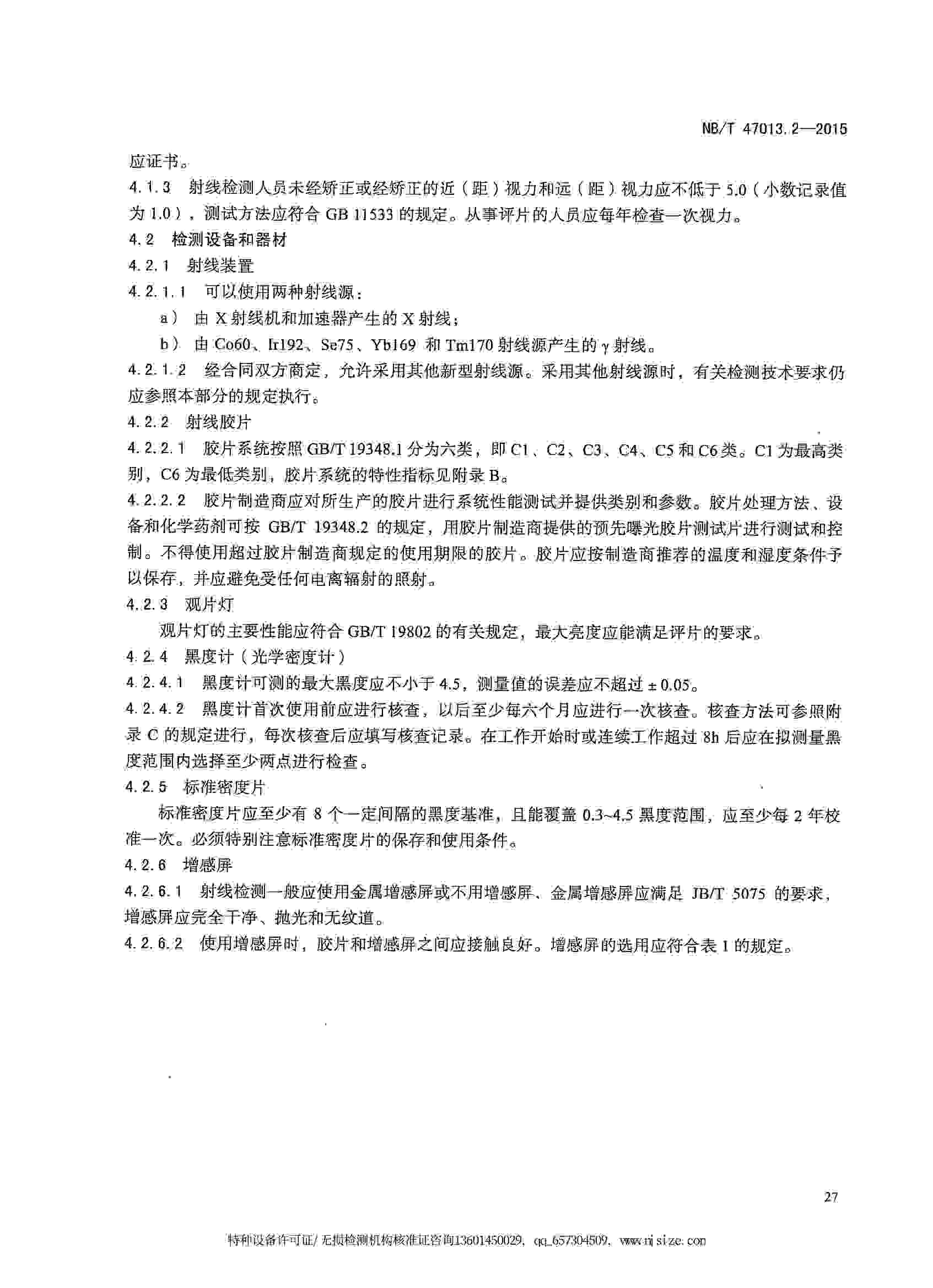 NB/T47013-2015 承壓設(shè)備無損檢測 第2部分:射線檢測