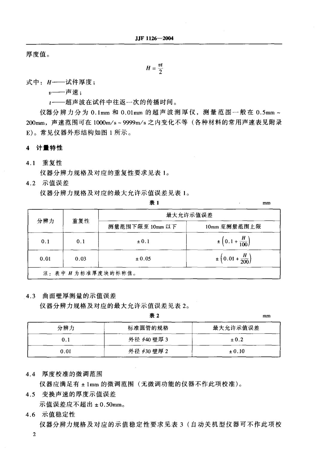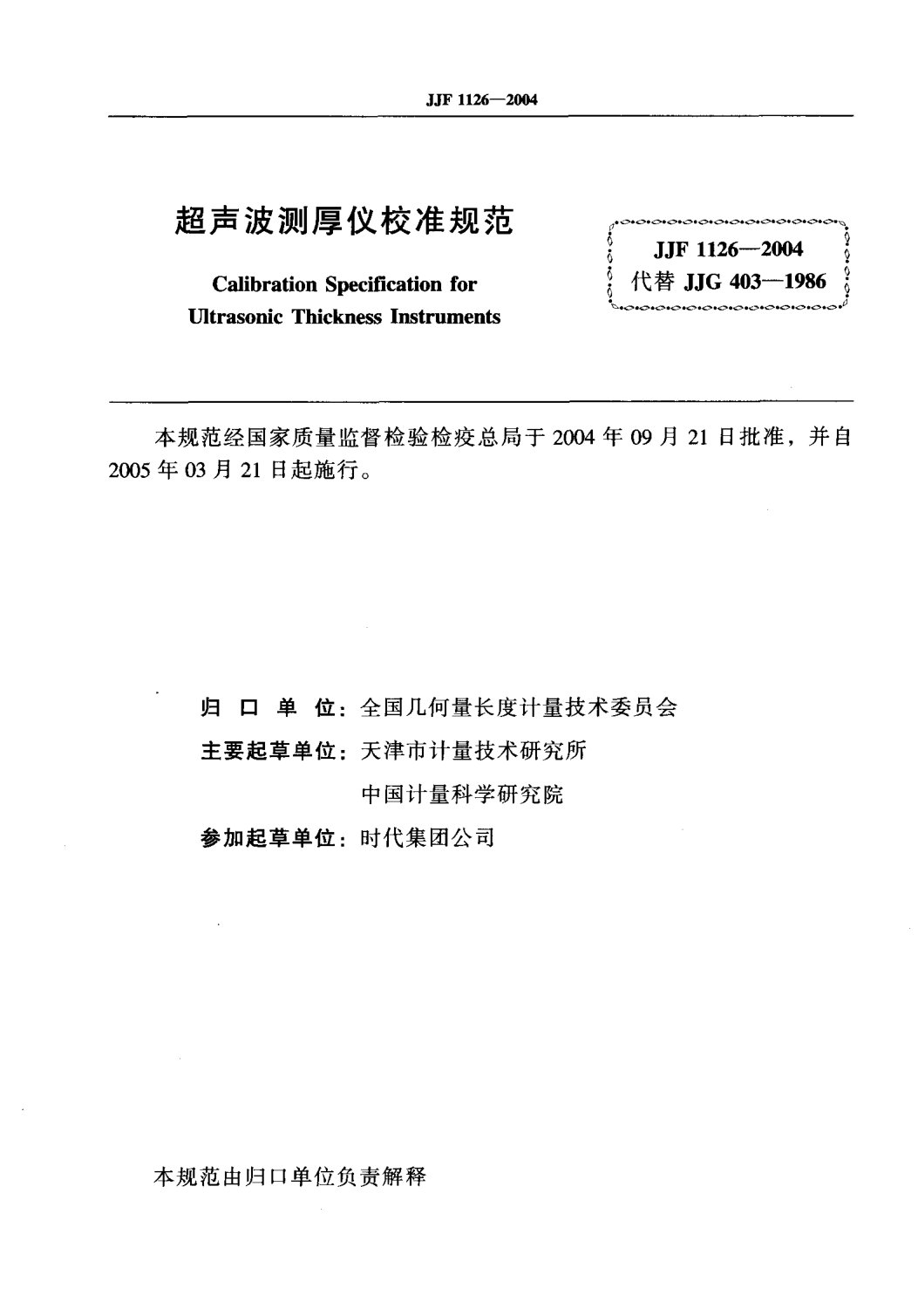 JJF1126-2004超聲波測(cè)厚儀校準(zhǔn)規(guī)范