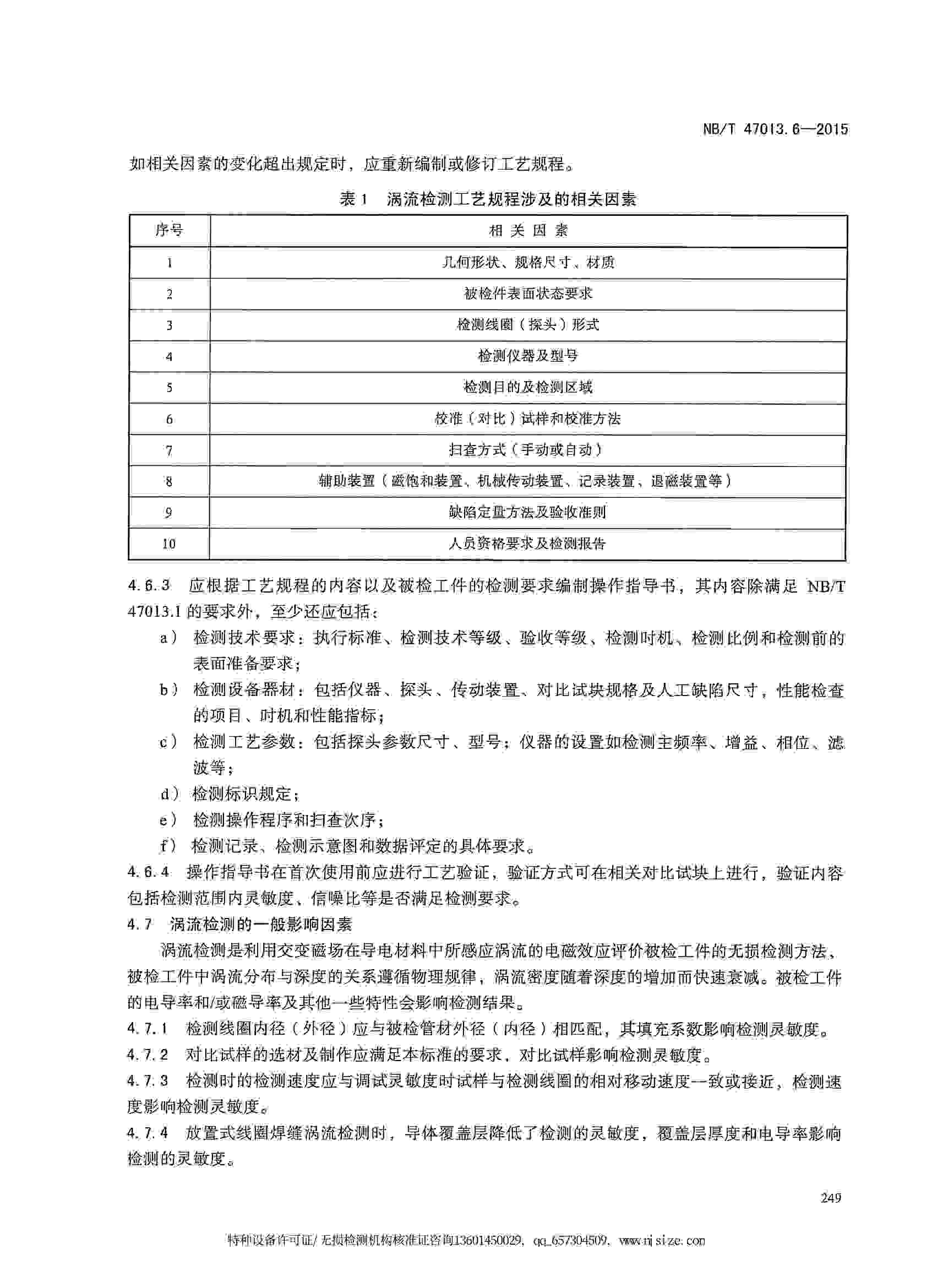 NB/T47013.6-2015 承壓設(shè)備無損檢測 第6部分:渦流檢測