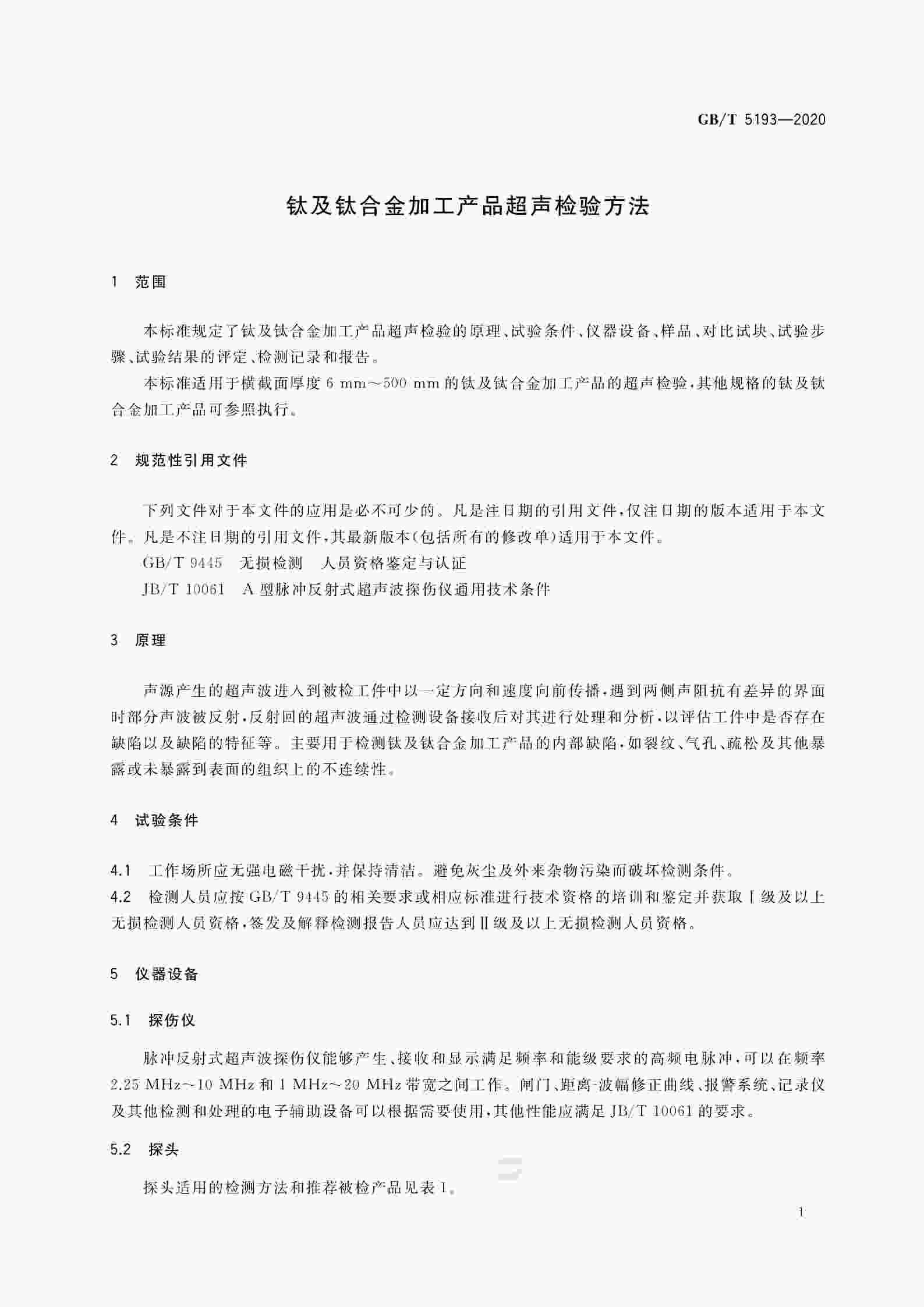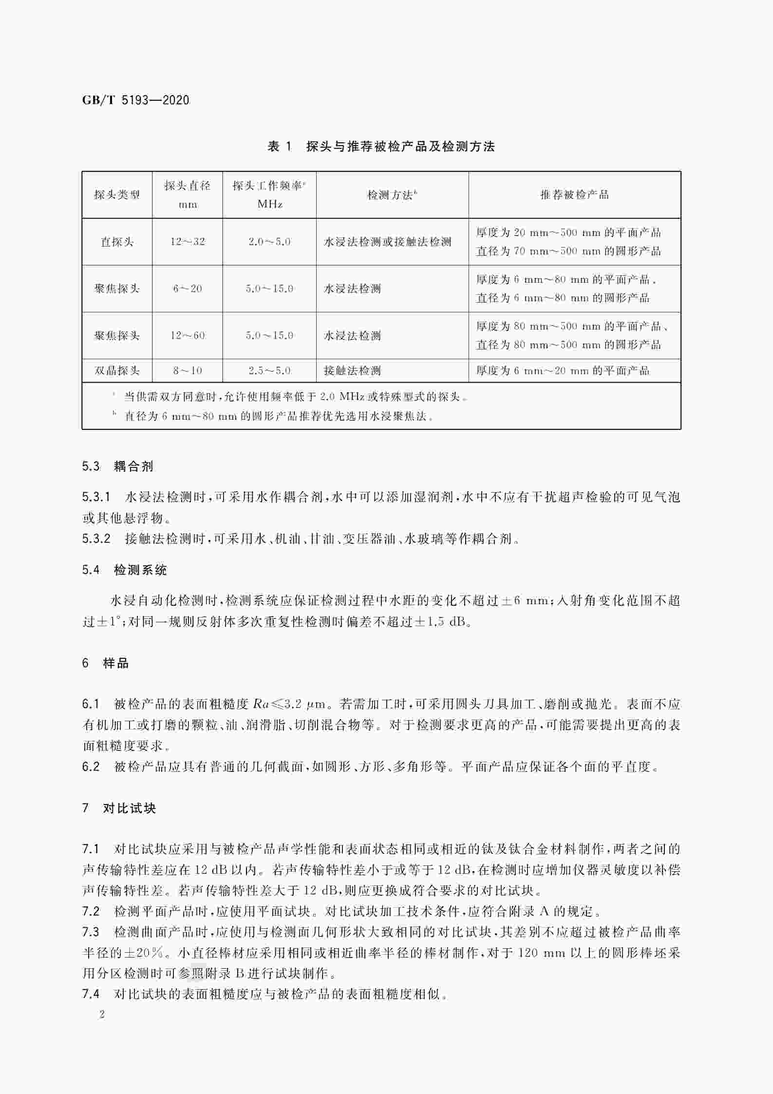 GB∕T 5193-2020 鈦及鈦合金加工產(chǎn)品超聲檢驗方法