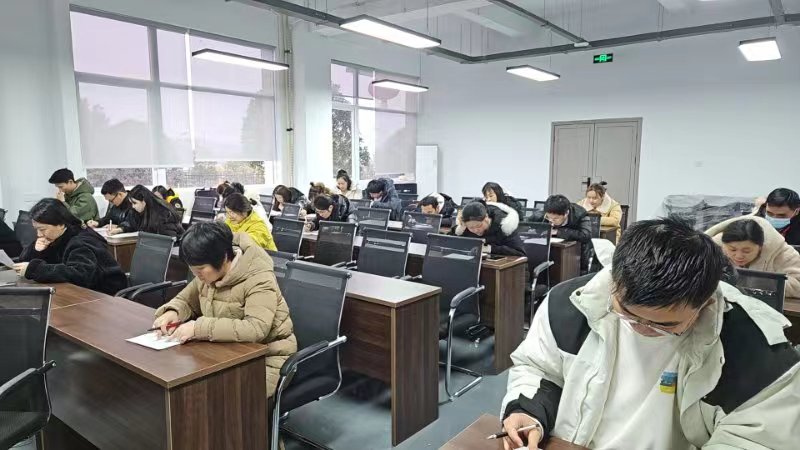 隨著考官將試卷分發(fā)下來(lái),參賽選手開(kāi)始“奮筆疾書”,在半小時(shí)的考試時(shí)間里,要完成筆試??紙?chǎng)上,有的選手埋頭作答一刻不停,有的則是默默讀題后再下筆,有的聚精會(huì)神揣摩題意……
