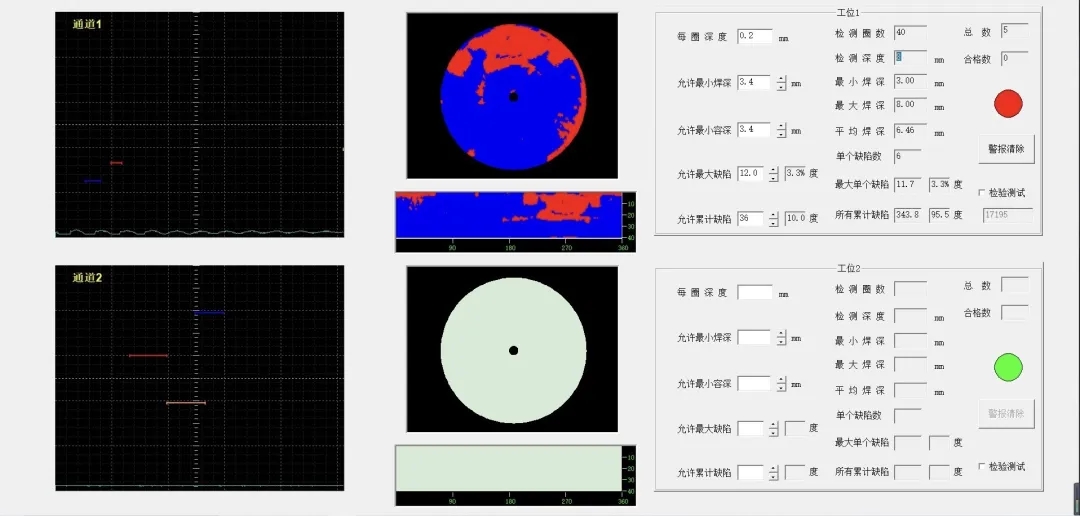 系統(tǒng)有兩個獨立的探傷通道,每一獨立檢測工位可單獨工作,兩個獨立的檢測工位可同時檢測不同的產(chǎn)品,系統(tǒng)分自動和手動,半自動三種操作模式。可獨立或同時打開兩個工位工作。