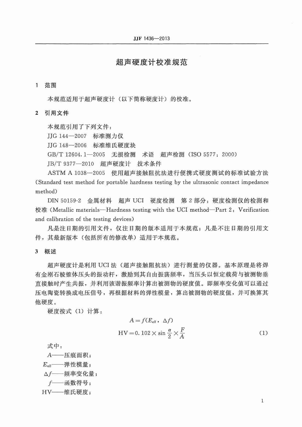 JJF 1436-2013 超聲硬度計(jì)校準(zhǔn)規(guī)范