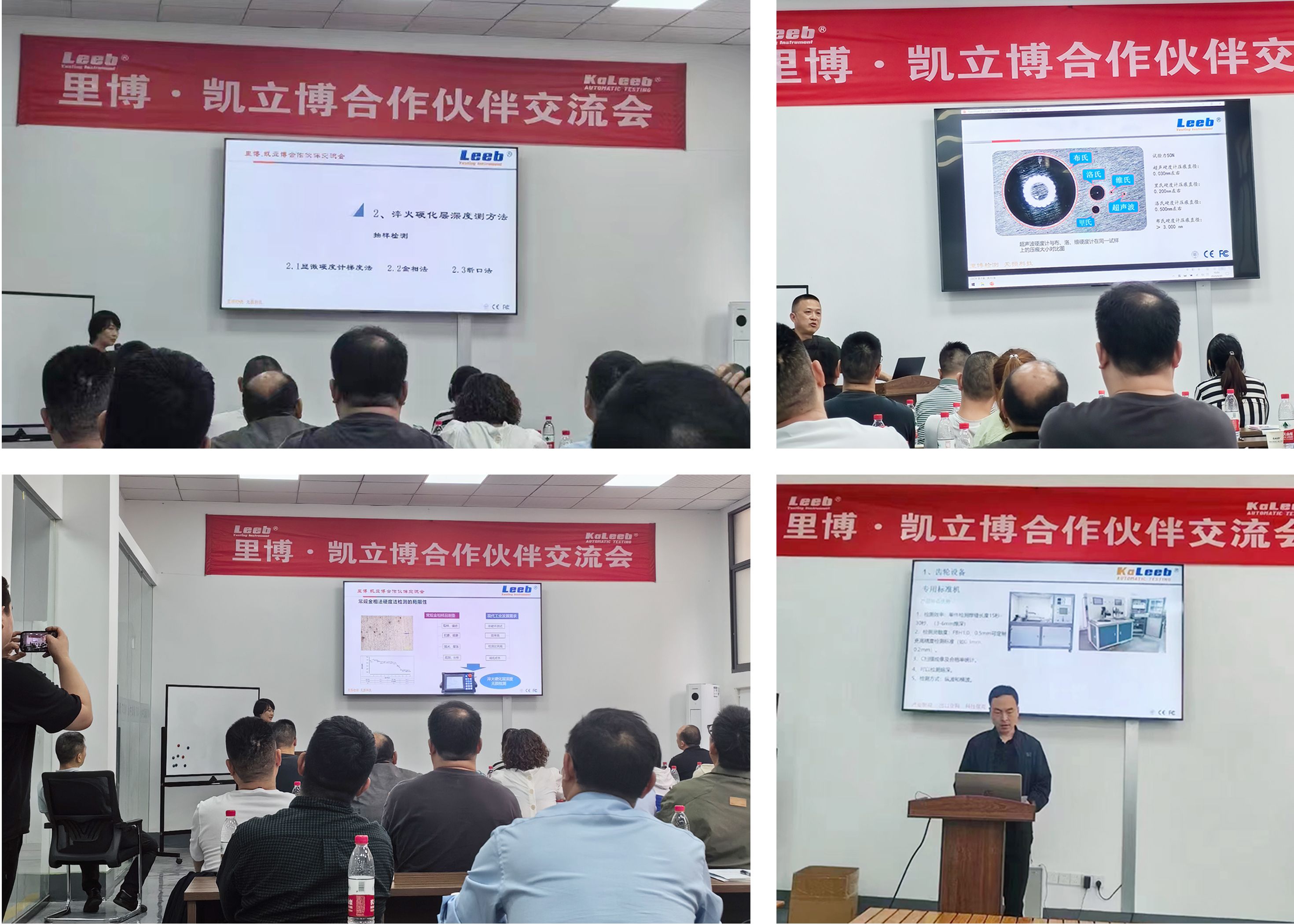 會議由凱立博執(zhí)行董事楊可主持,首先由凱立博銷售總監(jiān)趙中瓊對公司作了整體介紹,然后技術總監(jiān)簡超作高速旋轉(zhuǎn)頭在線探傷、螺旋前進在線探傷產(chǎn)品報告,技術經(jīng)理鄭建峰匯報C掃水浸超聲檢測、目視視覺檢測產(chǎn)品報告、銷售經(jīng)理李因偉匯報齒輪/飛輪超聲檢測產(chǎn)品報告、里博副總經(jīng)理馮學芳匯報淬火層深度測試儀、硬度計、金相顯微鏡產(chǎn)品報告、技術經(jīng)理張小林匯報高精超聲波測厚儀和超聲波探傷儀的產(chǎn)品報告,最后由楊總介紹經(jīng)銷商政策、合作模式以及服務理念。